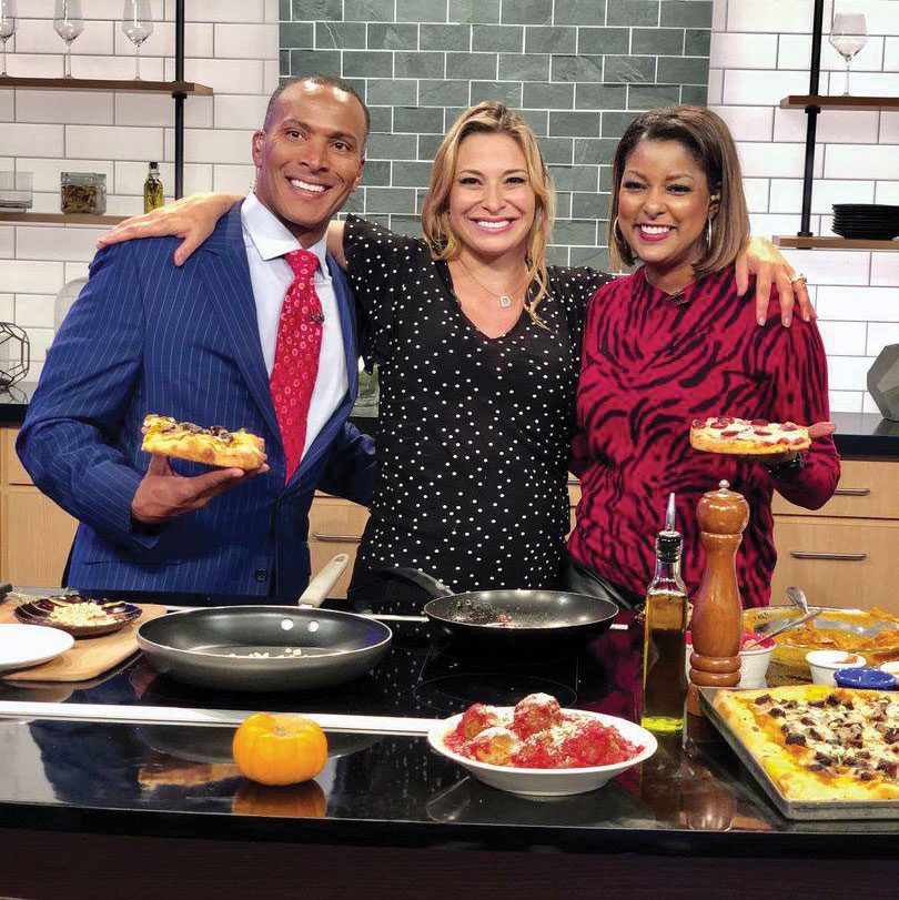 Despite an initial fear of public speaking, Arpaia, shown here on Fox 5’s Good Day New York, used local TV appearances to drive traffic to her first restaurant, Bellini.